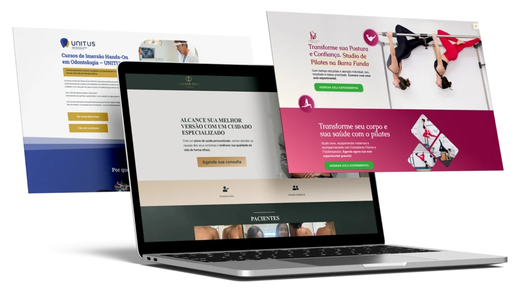 Desenvolvimento completo de landing pages focadas em apresentação, organização da informação e experiência do usuário. Cada página é estruturada de forma estratégica para guiar quem acessa até a ação desejada.
